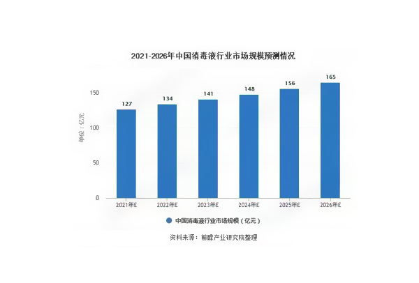 全球性衛(wèi)生事件的出現(xiàn)將促使每個(gè)消費(fèi)者的個(gè)人健康和衛(wèi)生意識(shí)大幅提高,也帶動(dòng)了個(gè)人清潔護(hù)理產(chǎn)品需求的提升。前瞻根據(jù)近年來我國消毒液行業(yè)的發(fā)展預(yù)測2026年我國消毒液行業(yè)市場規(guī)模約為165億元,年復(fù)合增速達(dá)到5.4%。